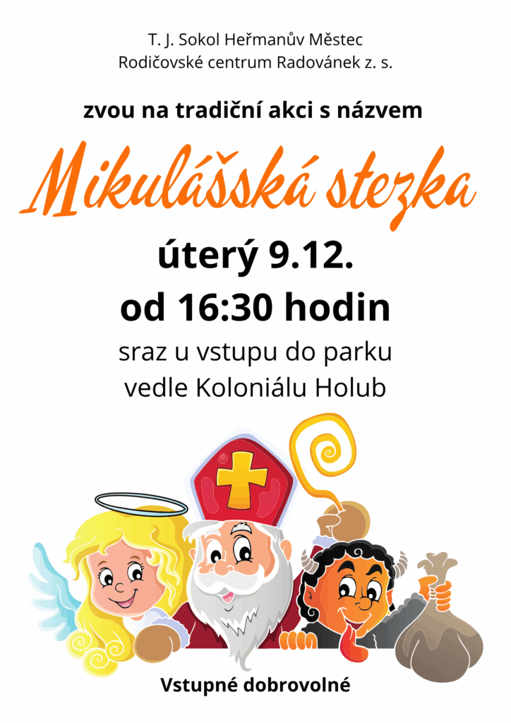 T. J. Sokol a Rodičovské centrum Radovánek z. s. srdečně zvou nejen rodiny s dětmi na tradiční tematickou stezku. Sraz u vstupu do parku vedle Koloniálu Holub. Dobrovolným vstupným přispíváte na další ročníky této i dalších akcí pro veřejnost.